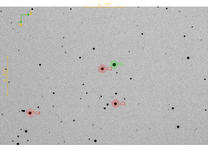 Okolí objektu, srovnávací a kontrolní hvězdy