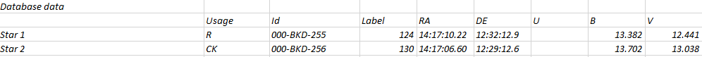 Okolí objektu, srovnávací a kontrolní hvězdy
