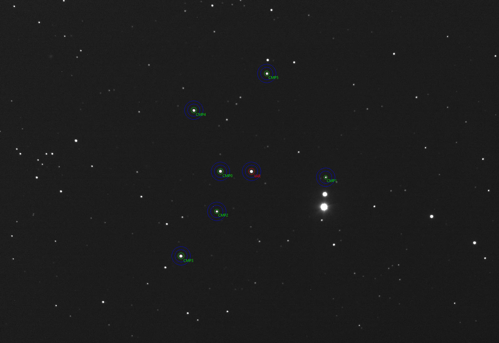 Okolí objektu, srovnávací a kontrolní hvězdy