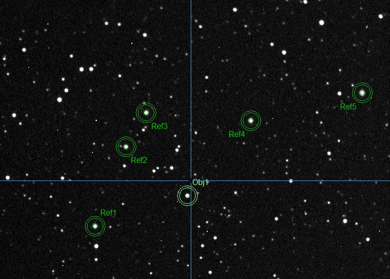 Okolí objektu, srovnávací a kontrolní hvězdy