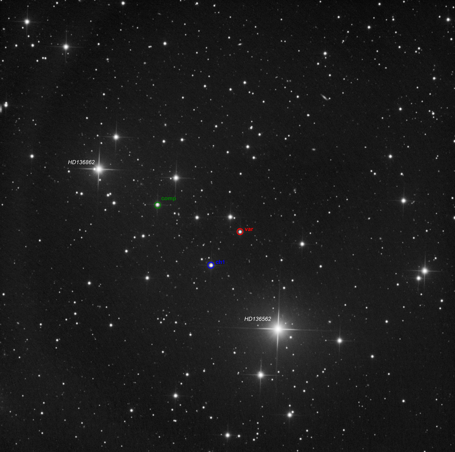 Okolí objektu, srovnávací a kontrolní hvězdy