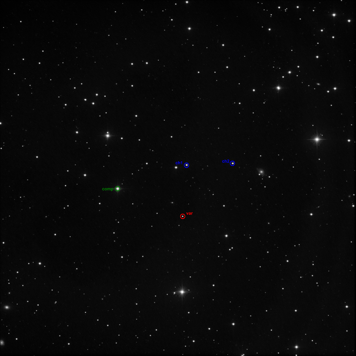 Okolí objektu, srovnávací a kontrolní hvězdy