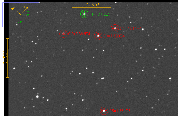 Okolí objektu, srovnávací a kontrolní hvězdy