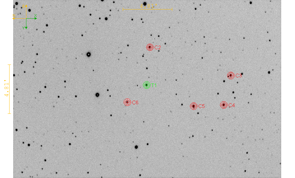 Okolí objektu, srovnávací a kontrolní hvězdy