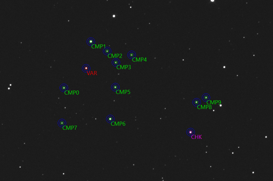 Okolí objektu, srovnávací a kontrolní hvězdy