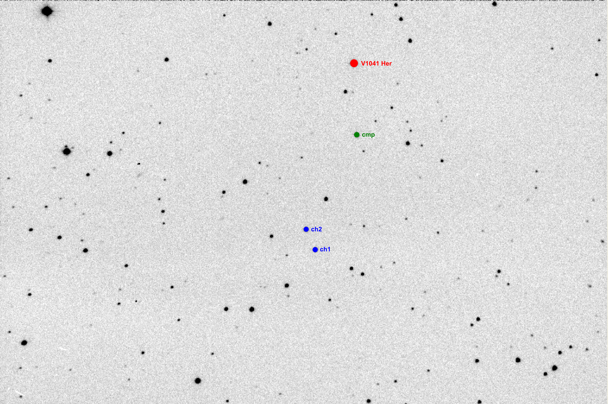 # NAME V 1041 Her # VAR 17:01:01.21 +49:23:16.5 2451332.6900 1.114112 11.6-12.1V EA (VSX 20110428) # OBS Martin Lehky (Hradec Kralove CZ; 0.40-m f/5 reflector + CCD G2) # FLT BVRI # RED CMunipack 1.1.26 + AVE 2.51 # NOTE 22/23 IV 2011; B_59_120s (54/7); V_59_90s (48/6); R_59_60s (52/6); I_59_60s (54/6); minimum P # NOTE FLT B 2455674.41912 +/- 0.00100; 20110422 22:03:22 (UT) GEO # NOTE FLT V 2455674.41655 +/- 0.00150; 20110422 21:59:50 (UT) GEO # NOTE FLT R 2455674.41842 +/- 0.00043; 20110422 22:02:31 (UT) GEO # NOTE FLT I 2455674.41806 +/- 0.00080; 20110422 22:02:00 (UT) GEO # NOTE FLT BVRI average 2455674.41803 +/- 0.00150; 20110422 22:01:58 (UT) GEO # COND clear weather
