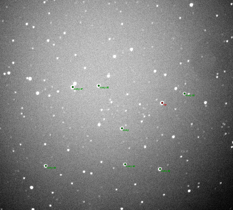 Poznámka:120 sec exposure filter clear binning 1x1 defocussed and multi comparison stars