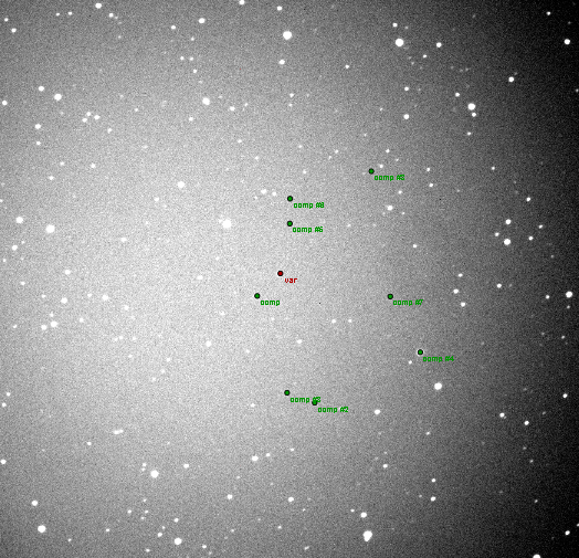 Poznámka:120 sec exposure filter clear binning 1x1 defocussed and multi comparison stars