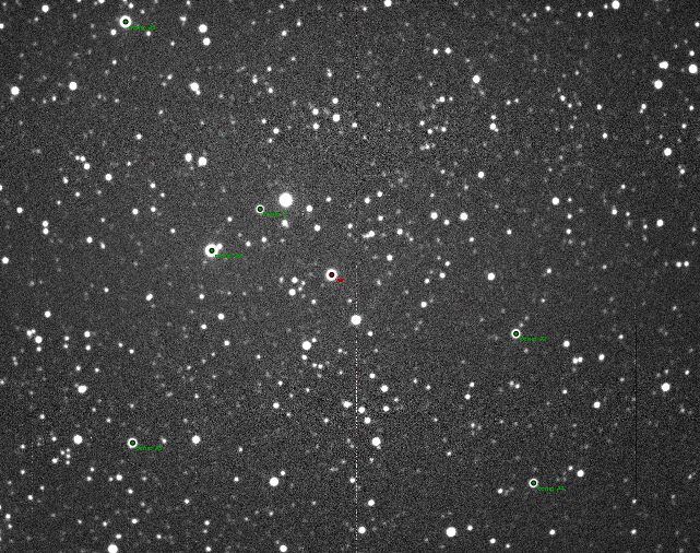 Poznámka:120 sec exposure filter G binning 1x1 defocused and multicomparison stars.