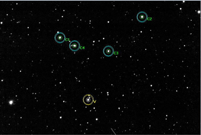 Poznámka:40 sec exposures, four comparison stars, the moon phase 64 %, -12 C