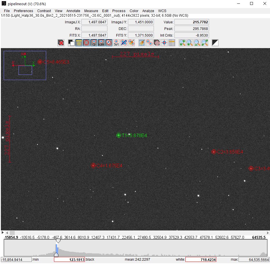 Poznámka:This flux data a better fit. Mag calculations used a saturated reference star. The attached apperature placement jpeg shows the comp stars for this run