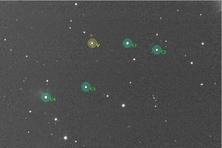 Poznámka:60 sec exposures, four comparison stars used, Moon phase 80 %, -10C. The transit did not appear in the LC at all!