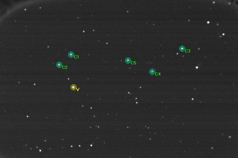 Poznámka:60 sec exposures, five comparison stars