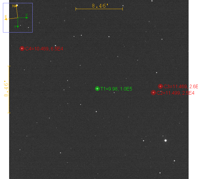 Note:R filter, 40s exp, fap 8-14-30 1.28 arcsecs/pix; bin 2x2; CCD -20C; Amb. Temp. ~5C; H ~53%