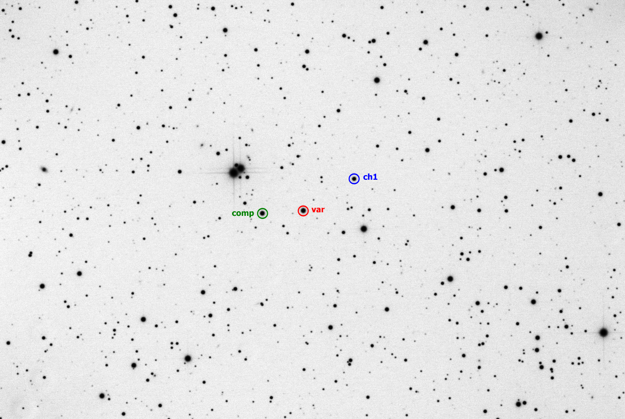 V B.R.N.O. jen první sekundární minimum, pak došlo k rapidnímu zhoršení podmínek (mlhavo), že jsem chtěl úplně ukončit pozorování. Okolo primárního minima jse, udělal 30x1 min DF a pak po mírném zlepšení podmínek pokračovalo pozorování. Ještě ověřit, zdali jsou obě pozorovaná minima skutečně sekundární a ne primární. ----- EBFit result (sekundární): ----- TminGJD = 2458533.27759 Error (1 sigma): +0.00014/-0.00017 (Bootstrapping), +0.00010/-0.00011 (Prayer bead), +0.00015/-0.00015 (LSM) Error (95% CI): +0.00028/-0.00029 (Bootstrapping), +0.00021/-0.00017 (Prayer bead) LSM: chi^2 = 102.8, n_freedom = 90 ----- EBFit result (sekundární): ----- TminGJD = 2458533.56892 Error (1 sigma): +0.00050/-0.00059 (Bootstrapping), +0.00026/-0.00020 (Prayer bead), +0.00053/-0.00053 (LSM) Error (95% CI): +0.00100/-0.00129 (Bootstrapping), +0.00045/-0.00031 (Prayer bead) LSM: chi^2 = 52.4, n_freedom = 54