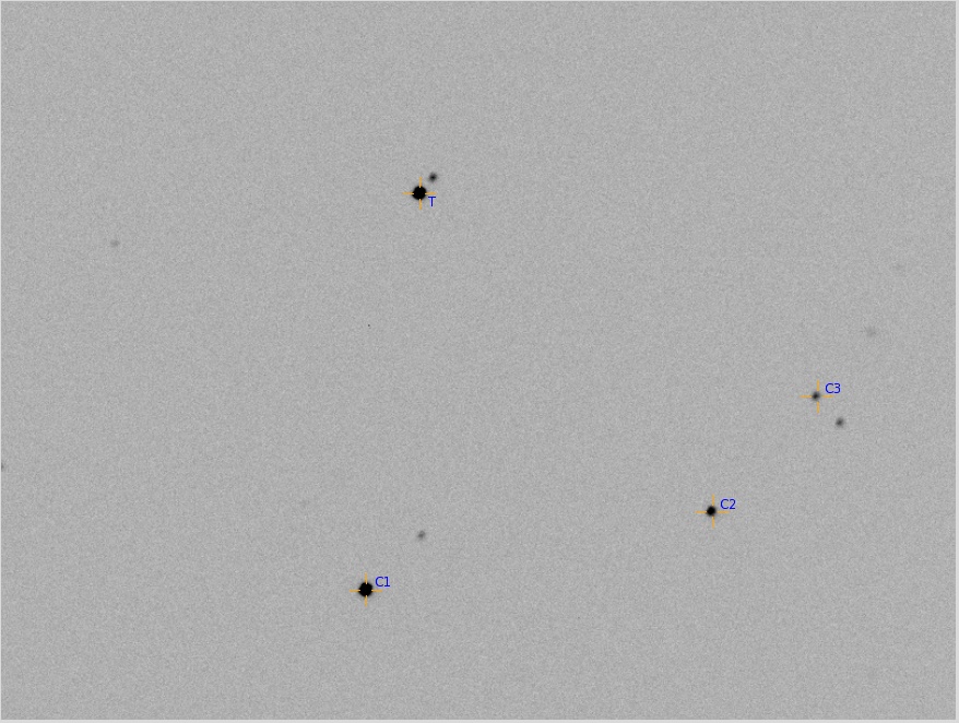 Note:CBB Filter Used. Full moon. Exposures 30s, binned 2x2. Weighted ensemble photometry using apertures (10, 11, 15). Many images rejected due to poor guiding. Each data point is average of 6 readings.