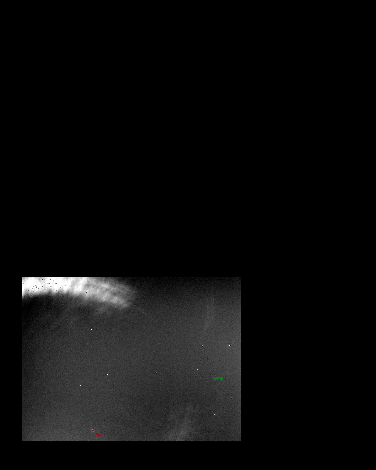 Note:Cirrus clouds and stray light by nearby street lamp.