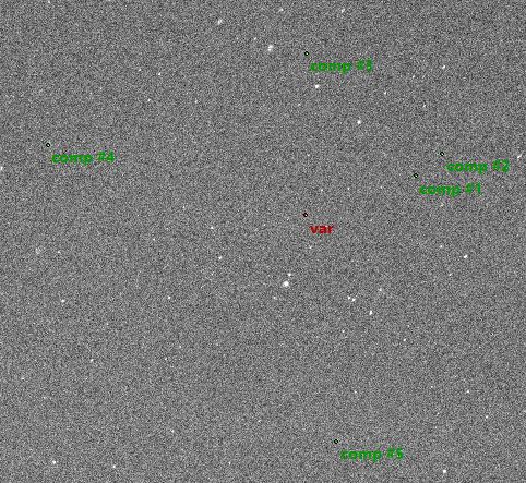 Note:Good conditions. Each measurement is a stack of 40x6s or (later) 40x5s. Observations started low (15°) in the eastern sky and required shorter exposures later to compensate extinction effects to avoid saturation. Yellow filter used.