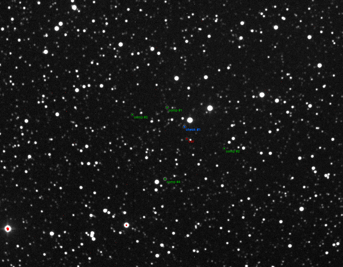 Note:120s exposures. Clear filter. Seeing >5". Multicomparison stars. Strong wind at the beginning preventing from having data.