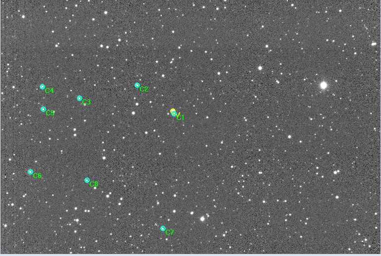 Note:Different reference stars have been used for this measurement than for the first measurement. The light curve is quite different