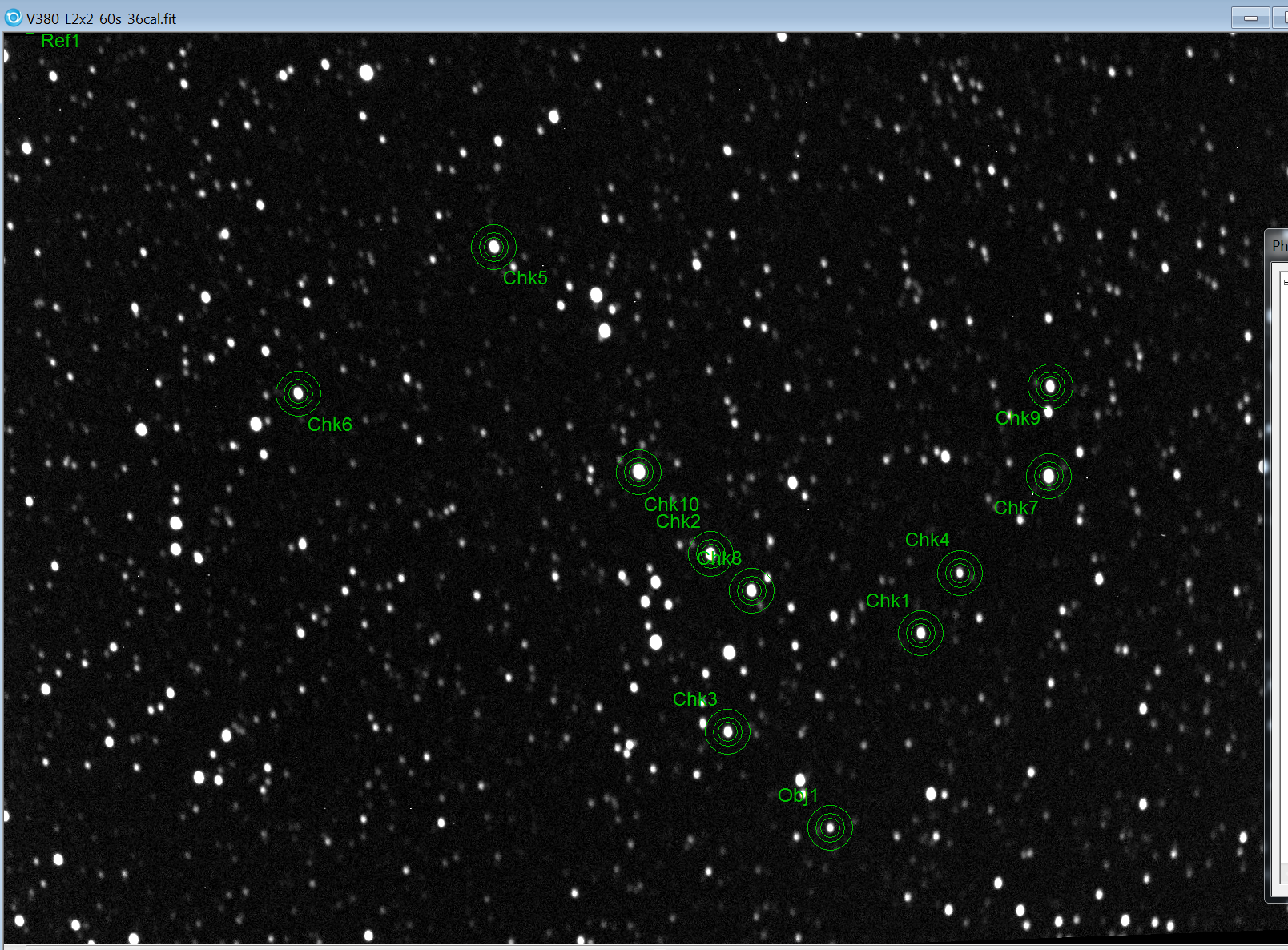 Voisinage de l'objet, étoiles de comparaison et de contrôle