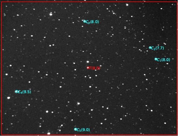 Voisinage de l'objet, étoiles de comparaison et de contrôle