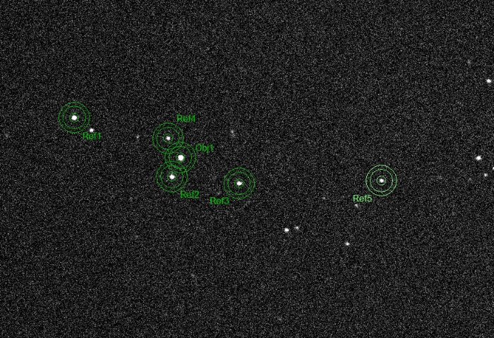 EXP. 60s | binning 1+1 | FWHM 4.79 px (3.78 arc-sec/pixel) | weather: light veiling, moisture | bortle 5, encircling light pollution | Photometric aperture radii: 10-24-32 | V photometric filter | object low on the horizon