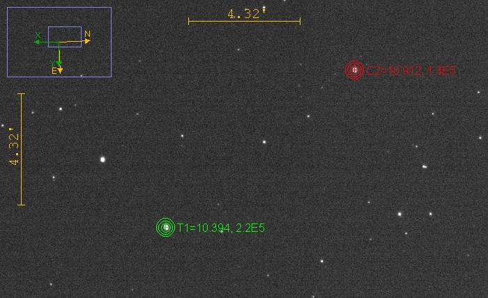 Voisinage de l'objet, étoiles de comparaison et de contrôle