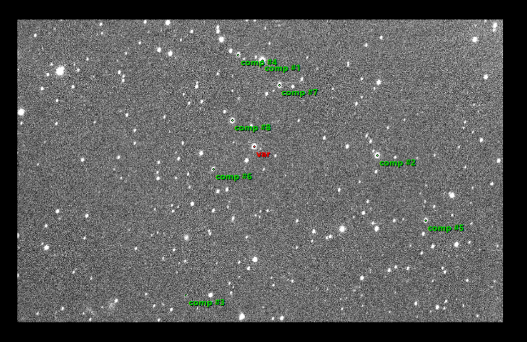 Voisinage de l'objet, étoiles de comparaison et de contrôle