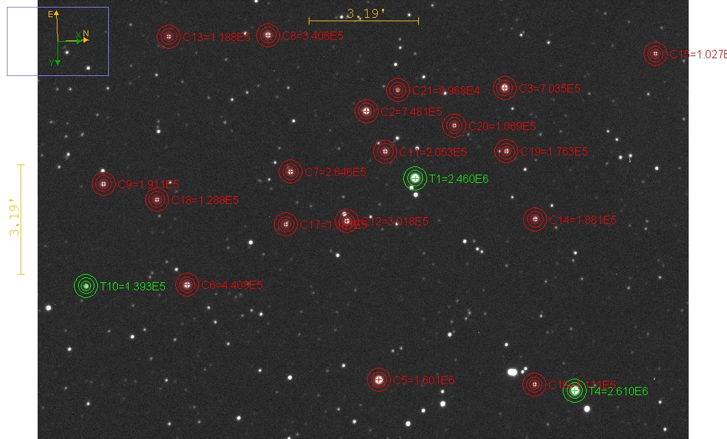 Voisinage de l'objet, étoiles de comparaison et de contrôle