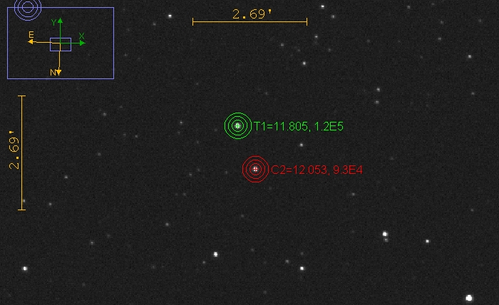 Voisinage de l'objet, étoiles de comparaison et de contrôle
