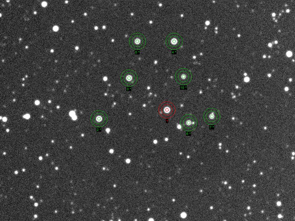 Note:120 sec, R filter. Aurora visible this night. Guiding lost for 15 min after ingress, due to clouds.
