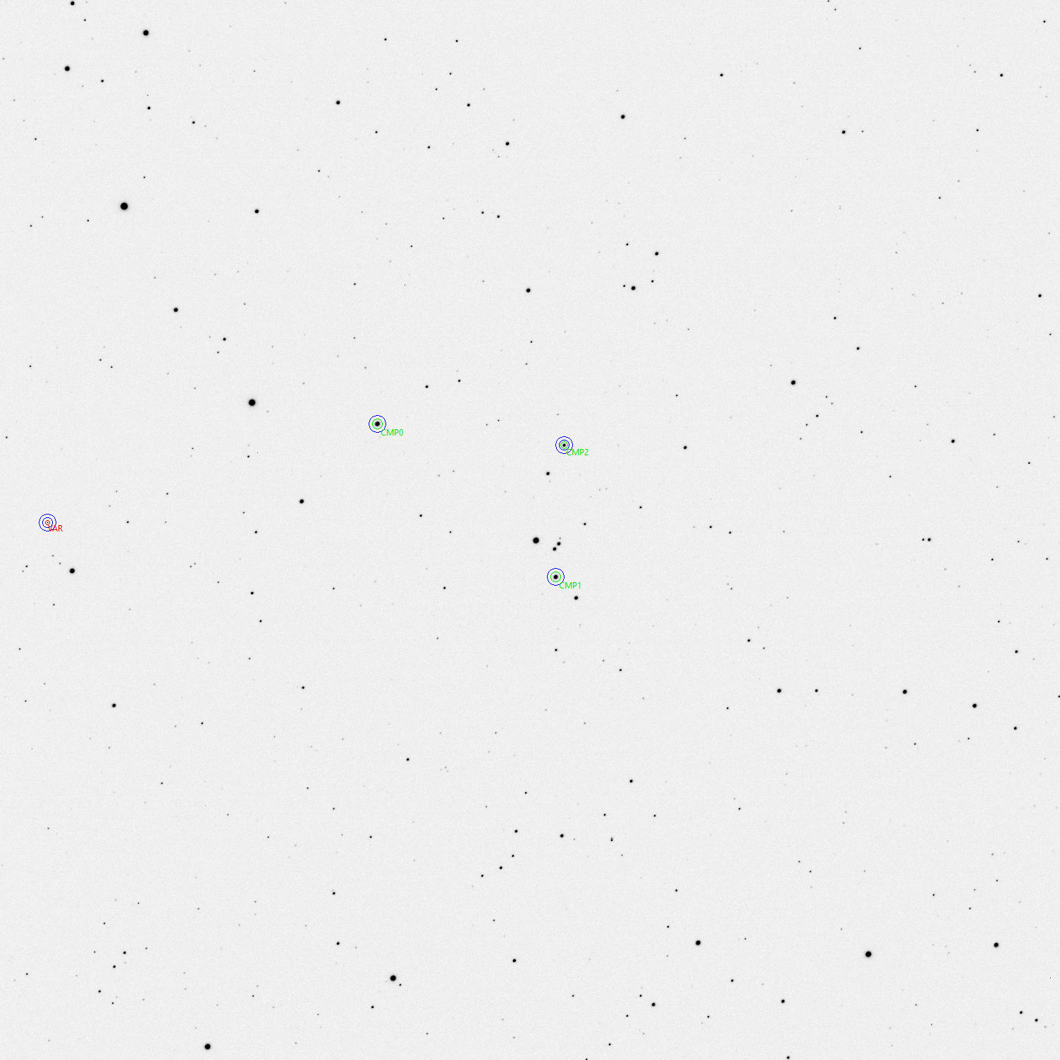 Voisinage de l'objet, étoiles de comparaison et de contrôle
