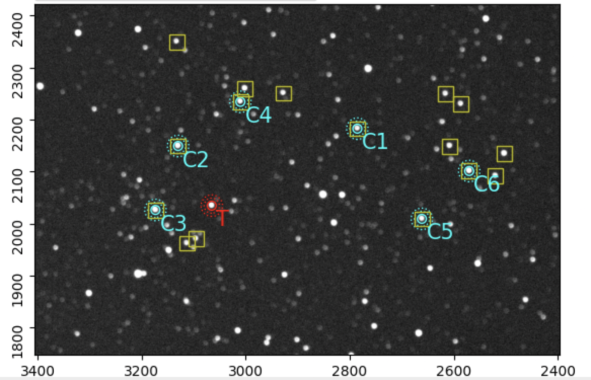 Voisinage de l'objet, étoiles de comparaison et de contrôle