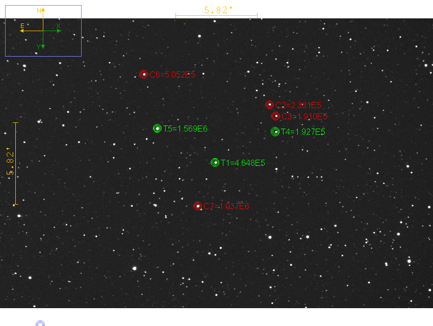Voisinage de l'objet, étoiles de comparaison et de contrôle
