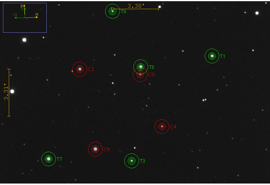 Voisinage de l'objet, étoiles de comparaison et de contrôle