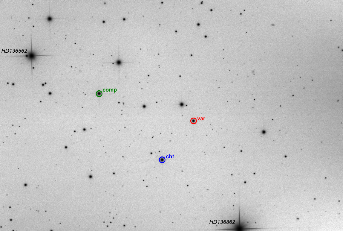 Voisinage de l'objet, étoiles de comparaison et de contrôle