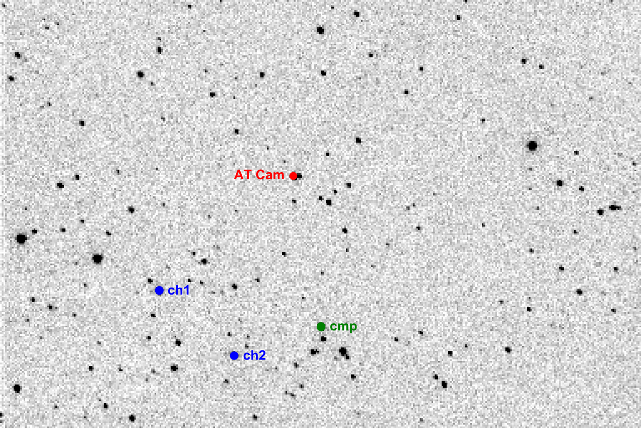 # NAME AT Cam # VAR 05:37:17.20 +67:02:34.0 2426057.4750 1.3959 9.8-10.6p EW/DM: (VSX 20101012) # OBS Martin Lehky (Hradec Kralove CZ; 0.25-m f/4 reflector + CCD ST7) # FLT R # RED CMunipack 1.1.26 + AVE 2.51 # NOTE 11/12 X 2010; R_500_30s (468/157); minimum P # NOTE 2455481.53349 +/- 0.00018; 20101012 00:48:14 (UT) GEO # COND very nice clear weather