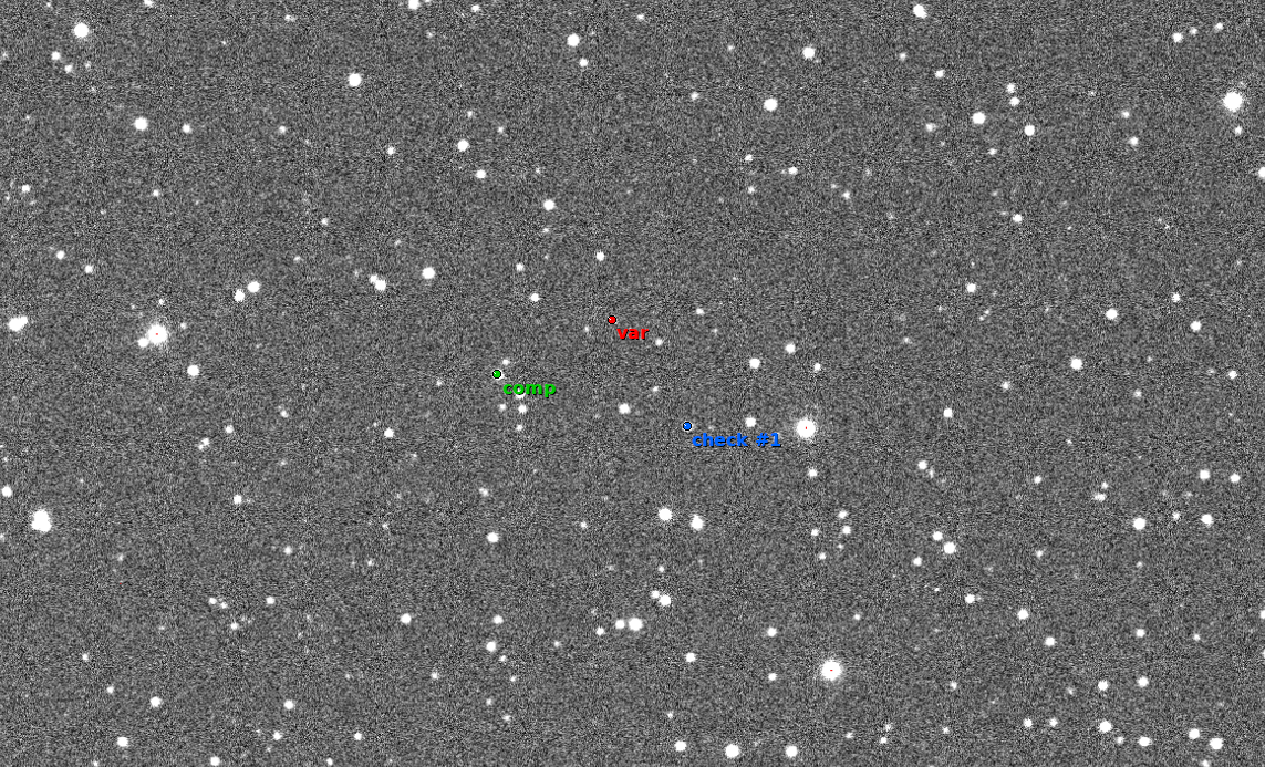 Note:vysoká oblačnost cmp.star: UCAC4-841-009024 b-v=0.38 chk.star: UCAC4-841-009033 b-v=0.5 ----- EBFit result: ----- Tmin = 2460213.33121 Error (1 sigma): +0.00277/-0.00129 (Bootstrapping), +0.00123/-0.00109 (Prayer bead), +0.00176/-0.00176 (LSM) Error (95% CI): +0.01974/-0.00346 (Bootstrapping), +0.00292/-0.00193 (Prayer bead) LSM: chi^2 = 10.9, n_freedom = 14