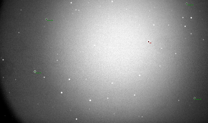 Note:90 sec exposure filter G binning 1x1 defocused and multicomparison stars. Full moon night (50° from target). Seeing 5"