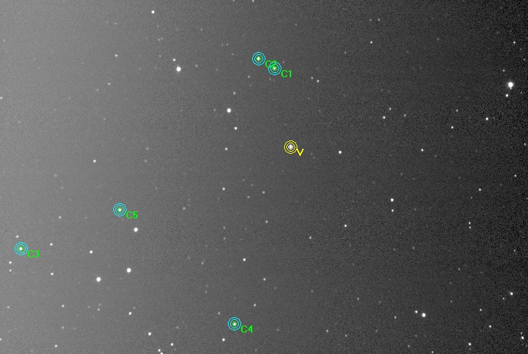 Note:photometric Bessell I filter, thin clouds, -10C, five comparison stars