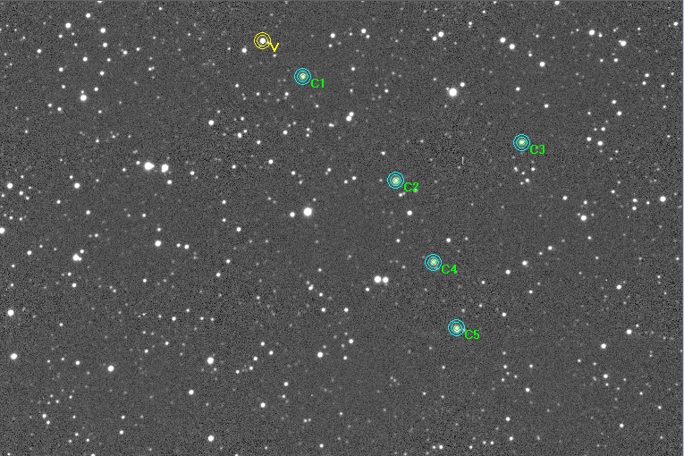 Note:100 sec exposures, five comparison stars, windy night