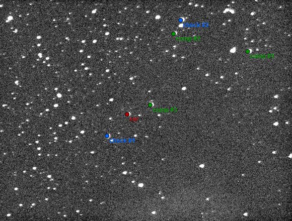 Note:Exp. 120s, filter TopTec J-C Rc, some high clouds and possible low clouds at the end. Hw binning 4x4, software 2x2. Adopted impact parameter 0.5, limb darkening 0.5 V1_ASI1600_120R_-10C_o2300_b4x2_cl5