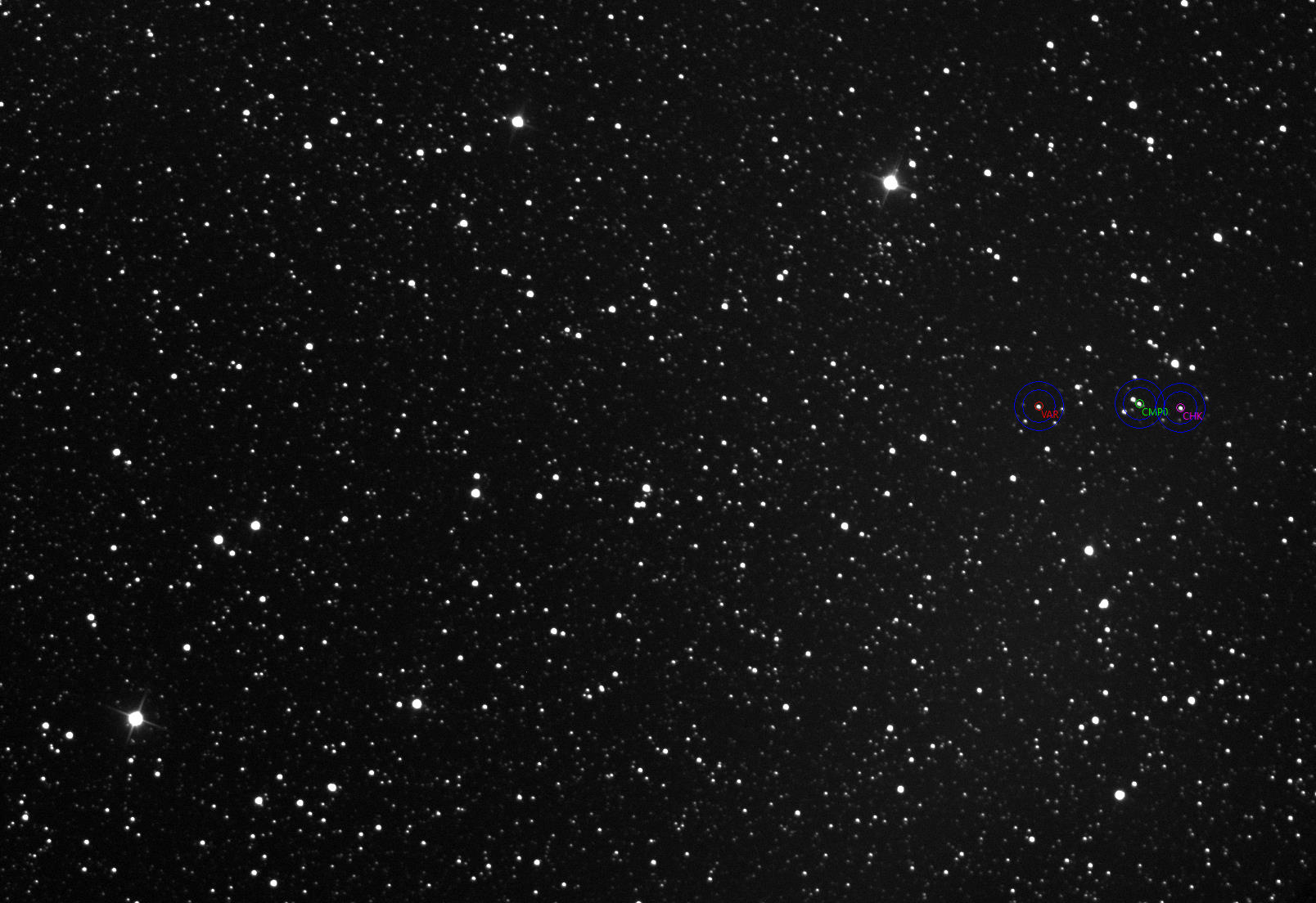 Voisinage de l'objet, étoiles de comparaison et de contrôle