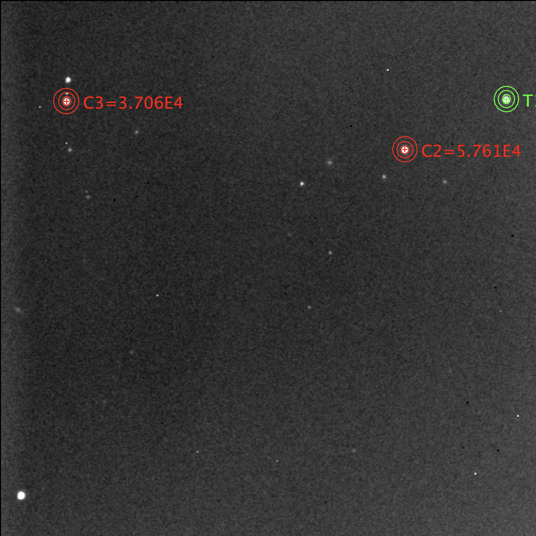 注釈:EXP. 90s (average) | binning 2x2, 1.1 '' per pixel | weather: some cloud cover, fully cloudy conditions near end of observation window | Moon illumination: 99%| Moon distance: 63| temp.: 59° F | Humidity: ~80% | Photometric aperture radii: 4-8-12 | GAIA G band used for ref star (C2) magnitude. (C3 check)
