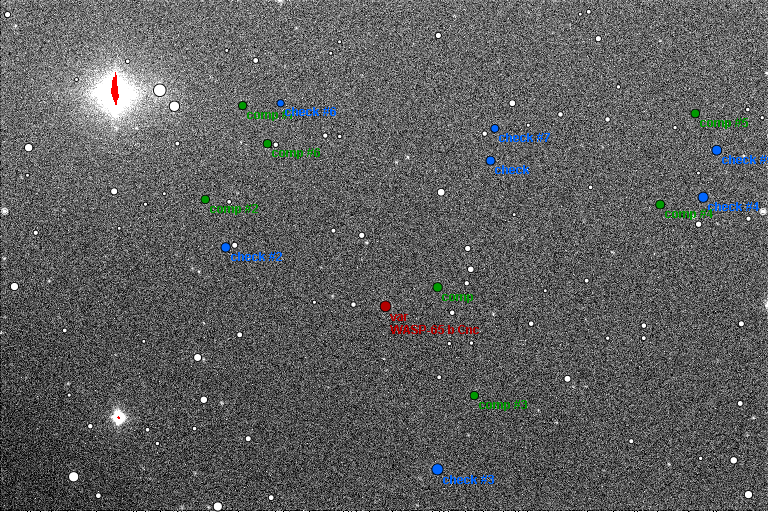 Předběžné zpracování s využitím korekčních snímků. Na začátku se teprve stmívalo, jasná obloha, teplota 17 až 5 °C, expozice 80 s, FWHM kolem 3, DQ = 3, TminHJD = 2456746.32927 +/- 0.00147