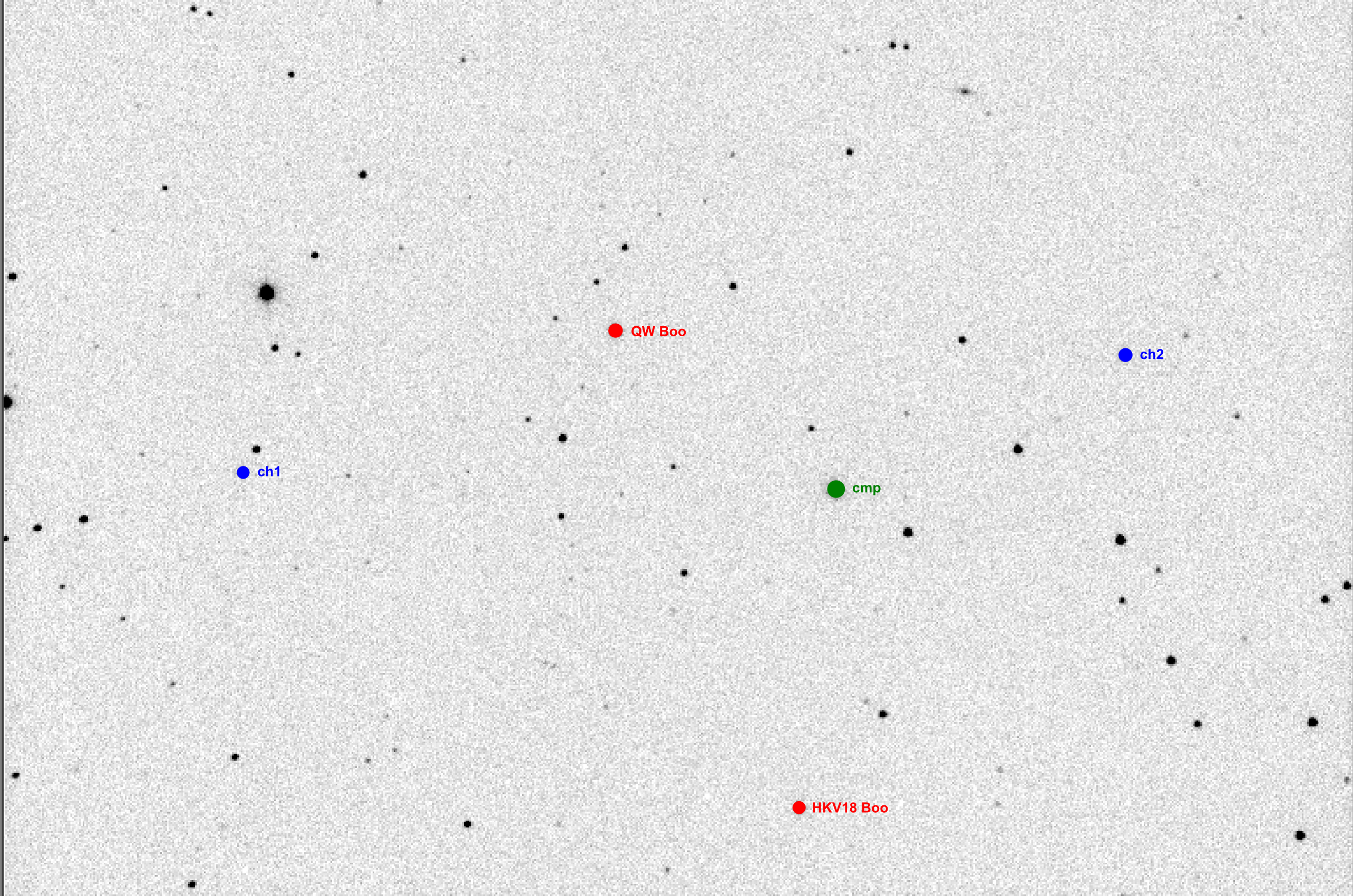 # NAME QW Boo # VAR 15:36:34.56 +46:38:09.3 2451391.919 0.290871 12.1-12.45R1 EW (VSX 20170401) # OBS Martin Lehky (Hradec Kralove CZ; 0.40-m f/5 reflector + CCD G2-1600) # FLT VRcIc # RED CMunipack 1.1.26 + Peranso 2.50 + SPHE/VSES Upload Form (2012) var.astro.cz # NOTE 30 IV / 01 V 2017; V_108_90s (103); Rc_108_60s (104); Ic_108_60s (105); 6.5h; maximum, minimum S, maximum, minimum P # NOTE FLT V 2457874.41927 +/- 0.00012; 20170430 22:03:45 (UT) GEO # NOTE FLT Rc 2457874.41885 +/- 0.00012; 20170430 22:03:09 (UT) GEO # NOTE FLT Ic 2457874.41939 +/- 0.00012; 20170430 22:03:55 (UT) GEO # NOTE FLT VRcIc average 2457874.41917 +/- 0.00012; 20170430 22:03:36 (UT) GEO # NOTE FLT V 2457874.56470 +/- 0.00011; 20170501 01:33:10 (UT) GEO # NOTE FLT Rc 2457874.56456 +/- 0.00015; 20170501 01:32:58 (UT) GEO # NOTE FLT Ic 2457874.56405 +/- 0.00011; 20170501 01:32:14 (UT) GEO # NOTE FLT VRcIc average 2457874.56443 +/- 0.00015; 20170501 01:32:47 (UT) GEO # COND clear weather # VAR USNO-B1.0 1366-0263058 UCAC4 684-055280 15:36:34.557 +46:38:09.25 J = 10.774 K = 10.197 J-K = 0.577 # CMP USNO-B1.0 1365-0254794 UCAC4 683-058140 15:36:12.192 +46:35:11.65 J = 09.950 K = 09.577 J-K = 0.373 # CH1 USNO-B1.0 1365-0255006 UCAC4 683-058152 15:37:13.767 +46:35:49.27 J = 11.288 K = 10.548 J-K = 0.740 # CH2 USNO-B1.0 1366-0262889 UCAC4 684-055266 15:35:41.647 +46:37:25.12 J = 11.638 K = 11.143 J-K = 0.495