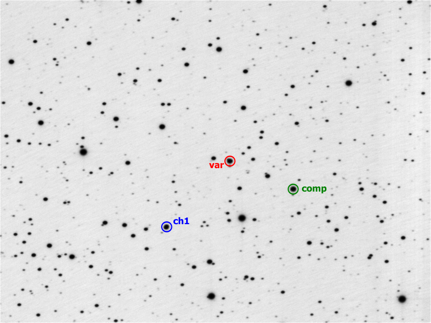 B.R.N.O. Silné poryvy větru, vyřadily část pozorovacích snímků + po minimu nástup oblačnosti ----- EBFit result: ----- TminGJD = 2458406.51699 Error (1 sigma): +0.00006/-0.00006 (Bootstrapping), +0.00003/-0.00002 (Prayer bead), +0.00003/-0.00003 (LSM) Error (95% CI): +0.00011/-0.00012 (Bootstrapping), +0.00005/-0.00008 (Prayer bead) LSM: chi^2 = 655.3, n_freedom = 128